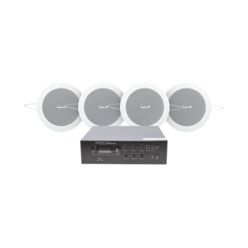 KIT de Amplificador de 120W para Escritorio | 4 Altavoces de Plafón de 4in | 3 - 6W | Sistema 70/100V