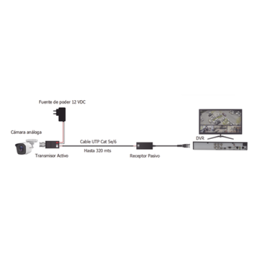 Kit de TRANSCEPTORES DE VIDEO DE LARGO ALCANCE / 320 Metros / Resolución 720P y 1080P / Cat 5e/6 / Compatible con cámaras HD-TVI/CVI/AHD/CVBS / Alimente solo el Receptor / Protección Interconstruida contra sobretensión.
