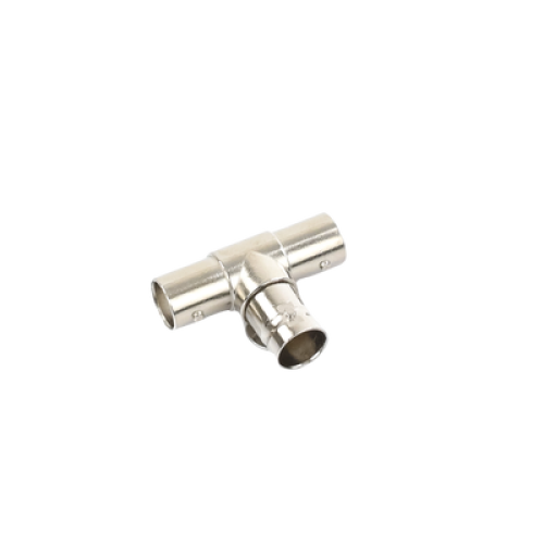 Adaptador en T para 75 Ohm de triple conectores BNC Hembras, Níquel/ Oro/ Teflón.
