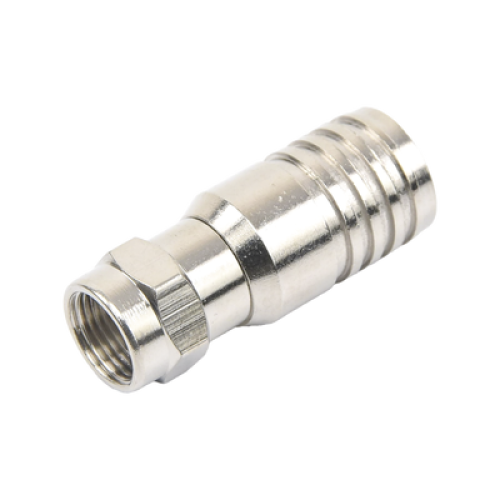 Conector F Macho en 75 Ohm, Plegable para Instalar en Cables Coaxiales RG-11, Cuerpo de Bronce-Niquelado/ Teflón.