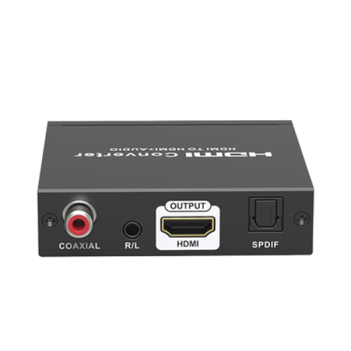 - Convierte una señal de entrada HDMI a una salida de video HDMI + salidas de audio SPDIF + R/L + COAXIAL.