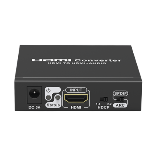 Este dispositivo es la solución ideal, si lo que quieres es disfrutar contenido de video digital HDMI con sonido separado; solo conéctalo a un amplificador o componente, para que el audio tenga mayor potencia. Está diseñado para tomar una señal digital HDMI y separar el audio en 3 diferentes salidas, así podrás elegir la que necesites (SPDIF + R/L (3.5 mm) + COAXIAL.). Además, conserva una salida HDMI para que conectes normalmente un dispositivo de reproducción de video como DVD, Blu-Ray o decodificador de TV de paga a tu pantalla. Admite convertir HDCP1.4 a HDCP2.2, HDCP2.2 a HDCP1.4, soporta resoluciones hasta 4K. El gabinete está fabricado de cerramiento metalico y tiene tamaño compacto, así que puede instalarse de forma discreta, ya que ocupa poco espacio.