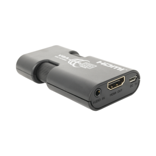 MINI Adaptador de VGA a HDMI / Resolución 1920x1080 @ 60Hz / Jack de audio de 3.5mm / Soporta alimentacion por Micro USB