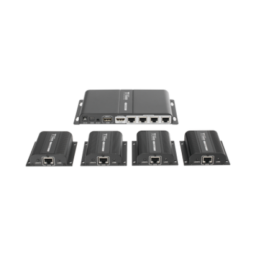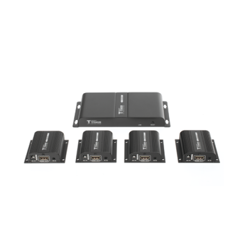 EPCOM TITANIUM presenta su gama de extensores HDMI de alta tecnología, y de fácil interconexión en sistemas de seguridad profesional. El TT714PRO funciona con 4 receptores HDMI utilizando cable CAT6 / 6a / 7 para dividir y extender 1 fuente HDMI a 4 pantallas HDMI hasta 40 m / 131 pies. La resolución admitida es de 1920x1080 @ 60Hz, soporta control IR, si su equipo fuente cuenta con control remoto, además con tecnología EDID puede adaptar la imagen transmitida a las capacidades del monitor o pantalla, gracias a la tecnología PoC solo el concentrador requiere de alimentación, es una solución ideal para exhibición HDMI, video conferencia y centro de espectáculos.