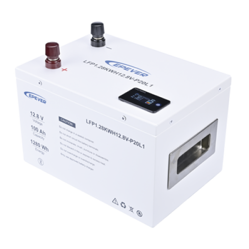 Batería de Litio LiFePO4 12.8Vcc, 100Ah, 1.28KwH, Pantalla LCD para Monitoreo Local, Carcasa Metálica