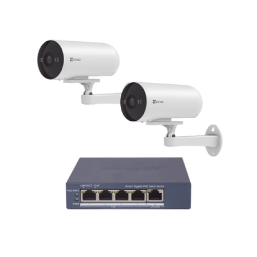 Kit de cámaras PoE Para Uso en Exterior / PoE Estandar Af / 2 piezas CS-H5/3MP/ 1 Pieza de Switch DS-3E1505P-EI/M / Vision Nocturna a Color / IP67 / Audio Bidireccional / Luz y Sirena / 4 Puertos 1000 Mbps PoE+ / 1 Puerto 1000 Mbps Uplink