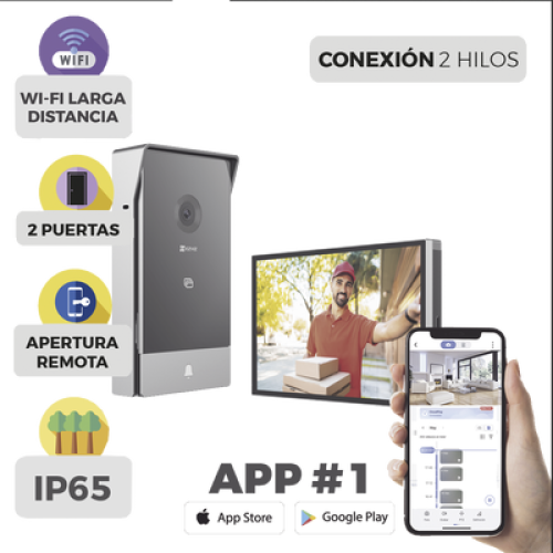 Videoportero IP Conexión a 2 Hilos / Con Monitor Wi-Fi para Interior / Frente de Calle IP65 Uso En Exterior Debe Tener Protección / Cámara 3 Megapíxel / Llamada a la App / Apertura remota / Apertura de 1 Puerta y un 1 Porton