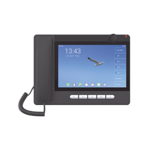 Teléfono IP Android 9.0 Empresarial para 20 líneas SIP, pantalla táctil, Wi-Fi y Bluetooth, PoE, hasta 112 botones DSS, puertos Gigabit, soporta recepción de video.