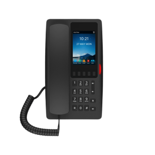 Fanvil H6W es un teléfono IP Wi-Fi económico con múltiples funciones y un aspecto elegante. Está equipado con 5 teclas programables para la línea directa de servicios, que se adaptan a diversos escenarios hoteleros. El H6W incorpora Wi-Fi de doble banda de 2,4 GHz y 5 GHz (Wi-Fi 6), lo que garantiza una conectividad perfecta. Además, cuenta con voz HD, Ethernet a 10/100 Mbps y PoE, lo que mejora la experiencia general del usuario y reduce los costes de instalación en el hotel. Además de en hoteles, el H6W también es adecuado para centros comerciales, hospitales, supermercados y otros entornos.