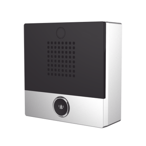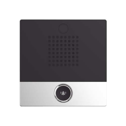 Mini Intercomunicador para hotelería y hospitales, con diseño elegante, PoE, 1 botón, 1 relevador integrado de salida y entrada.