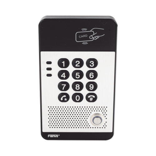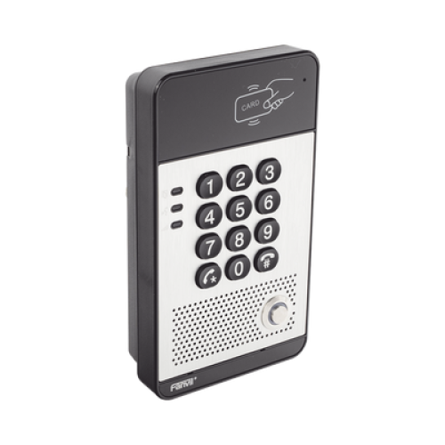 Audio Portero IP con 2 líneas SIP, relevador integrado, teclado numérico y lectora de tarjetas RFID para control de acceso, PoE