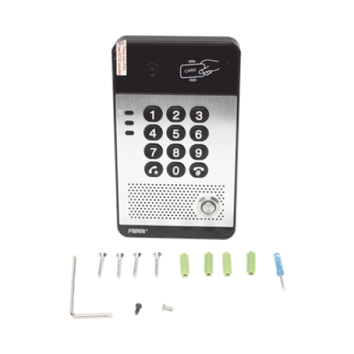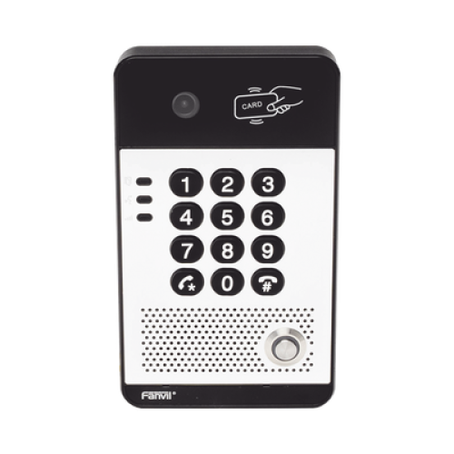 Vídeo Portero IP con 2 líneas SIP, cámara HD, relevador integrado, teclado numérico y lectora de tarjetas RFID para control de acceso, PoE