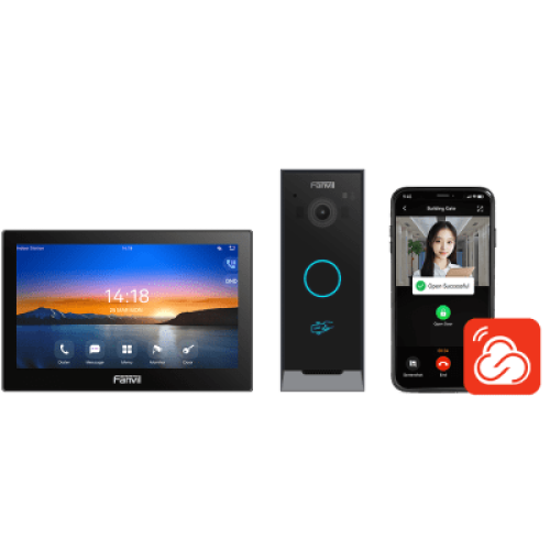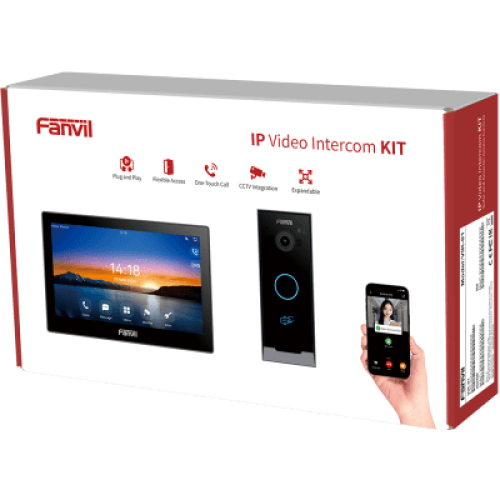 Kit Videoportero IP Fanvil VIK-01, Estación Interior SIP i504W + Frente de Calle i60, Llamadas HD, Desbloqueo Remoto, App Fanvil Link, PoE