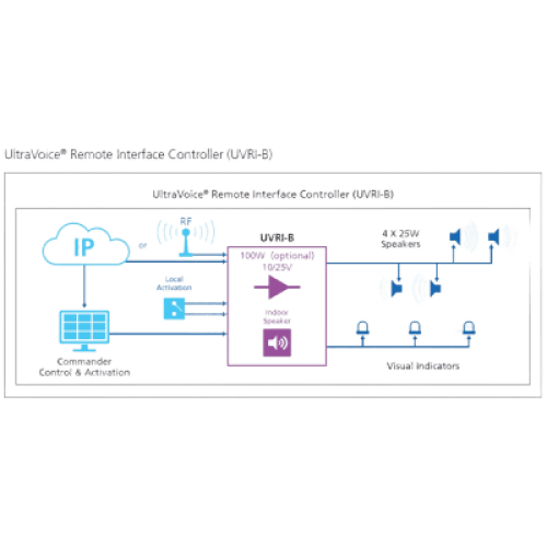 UltraVoice® UVRI-B: Controlador de 12 VCC con Autodiagnóstico y Amplificador Opcional de 100W