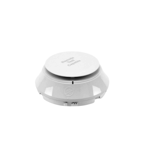 Detector de humo fotoeléctrico direccionable con prueba remota para ducto, color marfil.