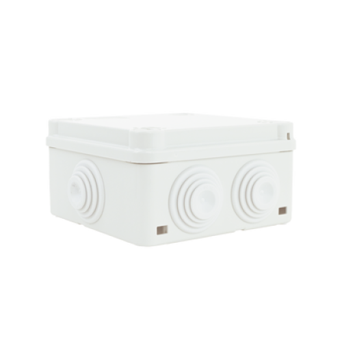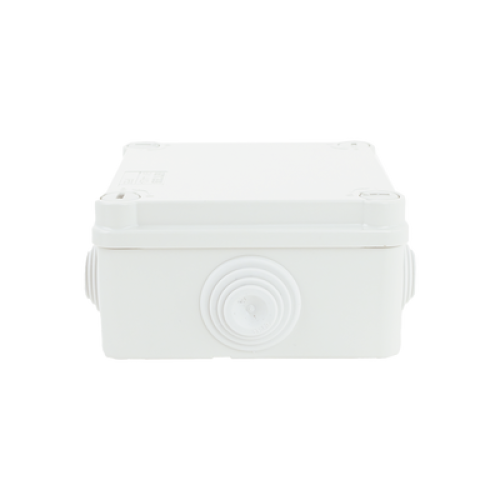 Caja Estanca de PVC Para Derivación y Conexión, 6 Entradas, Tapa con Tornillo de 1/4" de Vuelta, 100x100x50 mm (Área Interna), Uso Exterior IP55, Material que no Propaga el Fuego y Libre de Hálogenos