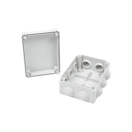 Caja Estanca de PVC Para Derivación y Conexión, 10 Entradas, Tapa con Tornillo de 1/4" de Vuelta, 150x110x70 mm (Área interna), Uso Exterior IP55, Material que no Propaga el Fuego y Libre de Hálogenos