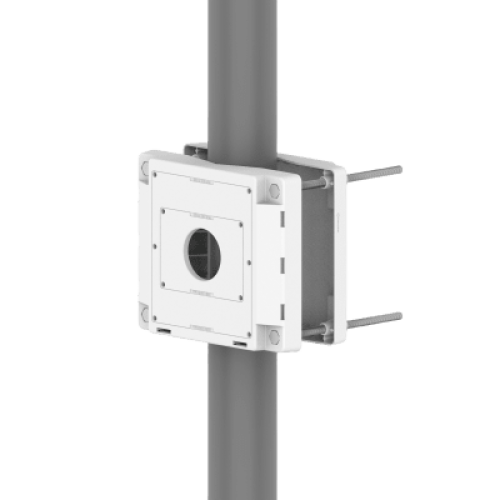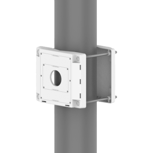 El soporte de poste SBP-150PMW de Hanwha Vision está diseñado para proporcionar una solución robusta y duradera para montar dispositivos en postes. Fabricado en aluminio de alta calidad, ofrece una excelente resistencia a la intemperie y un acabado estético en color blanco, adecuado para diversas aplicaciones.