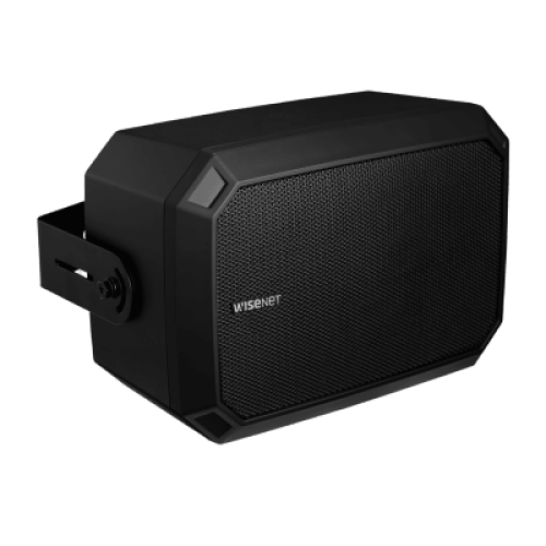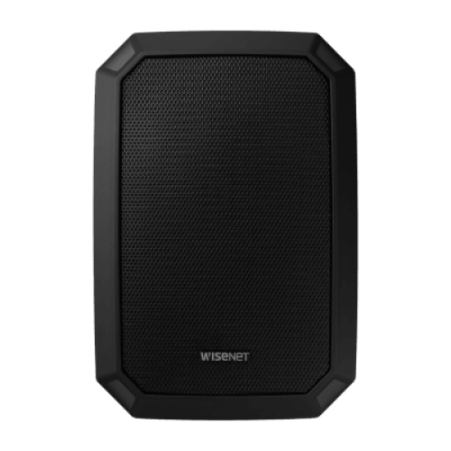 Altavoz IP Para instalacion en pared Color Negro / Amplificador integrado 10W / PoE+ / Para integración con sistema Hanwha / IP66 / SIP, IPv4, HTTP, DNS, NTP, TCP, UDP, ARP, NDAA.