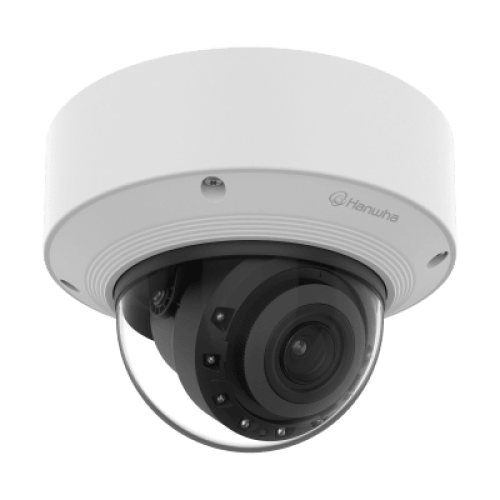 Cámara Domo AI IR 5MP / Motorizado Varifocal 3.3~9.3mm / Doble NPU / Análisis Inteligente / WDR 120dB / IR 50m / IP52 IK10 / PoE / Wisenet 9
