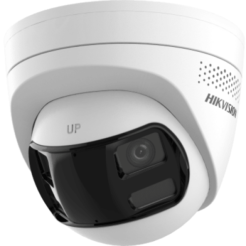 [PROTECCIÓN ACTIVA] Turret IP 6Megapixel / 2 Lentes de 2.8 mm (Imagen Panorámica 180°) / 30 mts IR / Exterior IP67 / Luz Intermitente y Alerta de Audio / Audio Bidireccional / ACUSENSE / WDR 120 dB / Micro SD