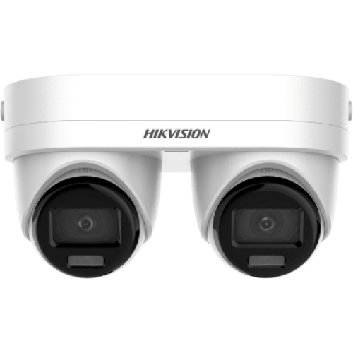 PanoVu Series / Lente Dual de 4 Megapixel / 2 Lentes Fijos de 2.8 mm / Recomendado para Pasillos o Esquinas / IP67 / IK10 / PoE / WDR 120 dB / 10 mts IR / Entrada y Salida de Audio y Alarma / MicroSD