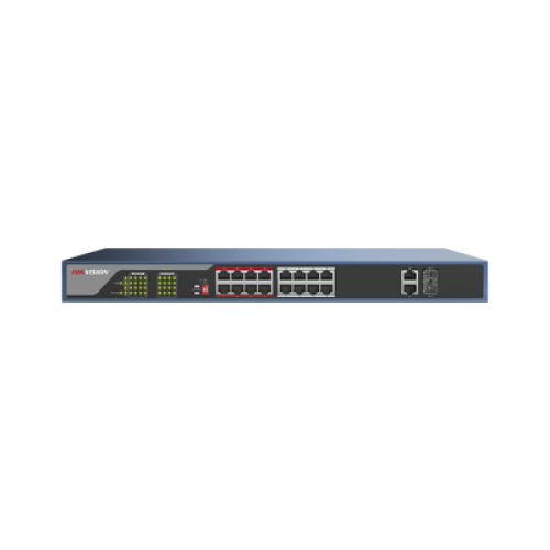 Switch PoE 250 Metros Larga Distancia / 16 Puertos 802.3at (30 W) 100 Mbps + 2 Puertos Gigabit + 2 Puertos SFP