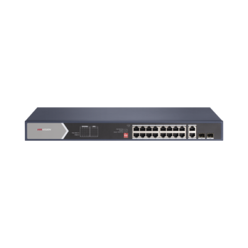 Switch Gigabit PoE+ / No Administrable / 16 Puertos 1000 Mbps PoE+ (4 Puertos PoE++ 90 W) / 2 Puertos 1000 Mbps Uplink + 2 Puertos SFP de Uplink / Modo Extendido hasta 300 Metros / 225 W