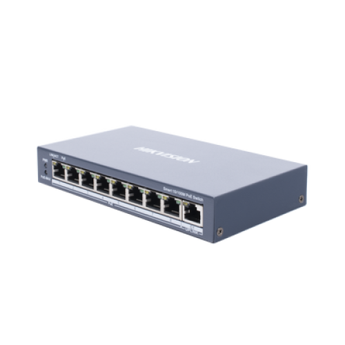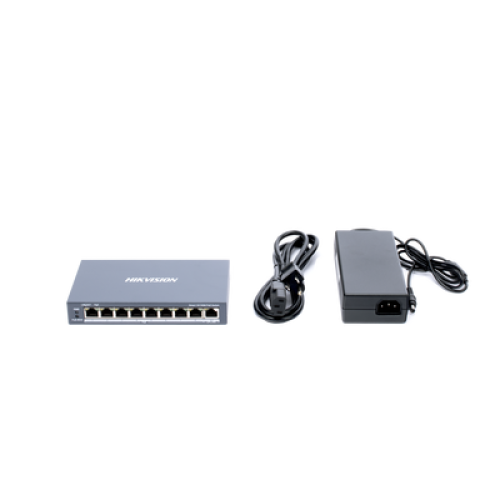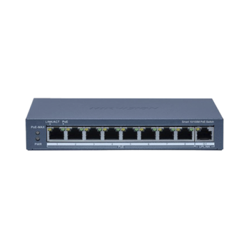 Switch PoE+ / Monitoreable / 8 Puertos 10/100 Mbps PoE+ / 1 Puerto 1000 Mbps de Uplink / Configuración Nube Hik-PartnerPro / Modo Extendido hasta 300 Metros / 110 W