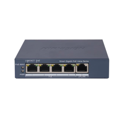 Switch Gigabit PoE+ / Monitoreable / 4 Puertos 1000 Mbps PoE+ / 1 Puerto 1000 Mbps Uplink / Configuración Nube Hik-PartnerPro / Modo Extendido hasta 300 Metros / 45 Watts