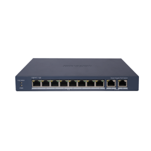 Switch Gigabit PoE+ / Administrable / 8 Puertos Gigabit PoE+ / 2 Puertos Gigabit / Configuración Nube Hik-Partner Pro / Modo Extendido hasta 300 Metros / 110 W