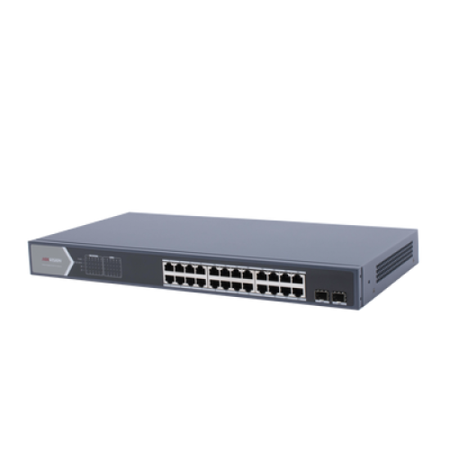 Switch Gigabit PoE+ / Administrable / 24 Puertos 1000 Mbps PoE+ / 2 Puertos SFP / Configuración Remota desde Hik-PartnerPro / PoE Extendido 250 Metros / 370 Watts