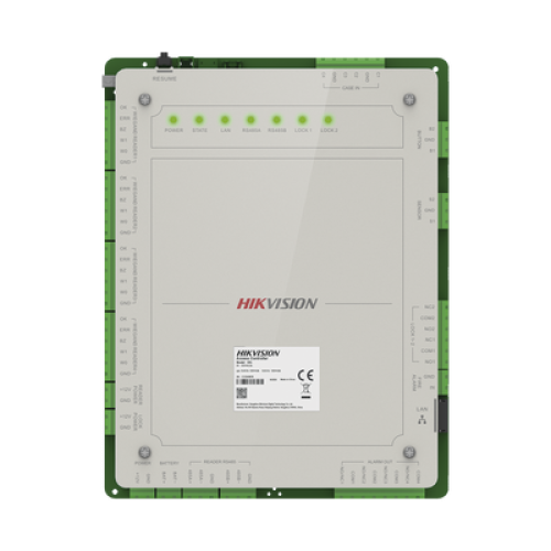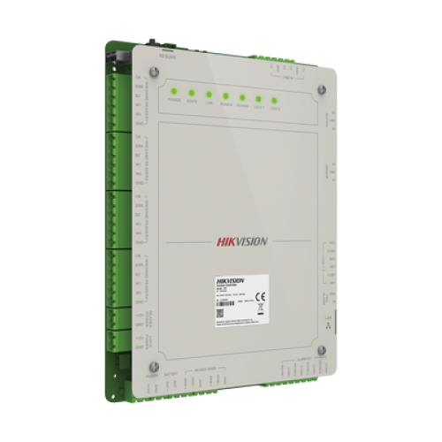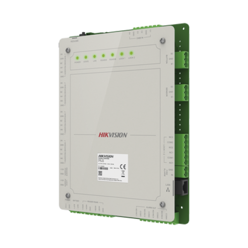 Controlador de Acceso 2 Puertas Administrable en la Nube con Hik-Connect Teams / Interfaz Web / 4 Lectores de Huella o Tarjeta / 100,000 Tarjetas / 10,000 Huellas / Incluye Gabinete y Fuente de Alimentación 12 Vcd 8 A / Soporta Batería de Re