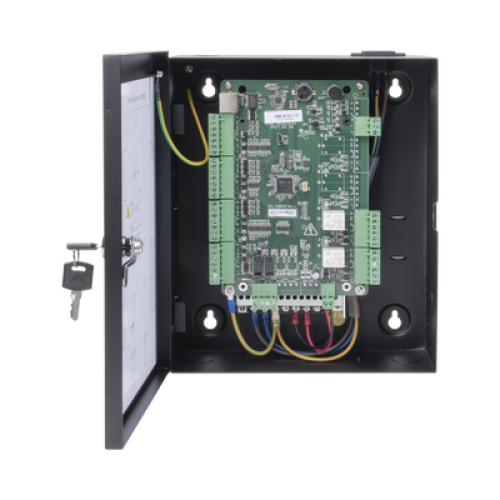 Controlador de Acceso para 2 Puertas y 4 Lectores / Fácil Administración con Software Gratuito / Incluye Gabinete y Fuente de Alimentación 12Vcc/8A / 10,000 Tarjetas / 50,000 Eventos