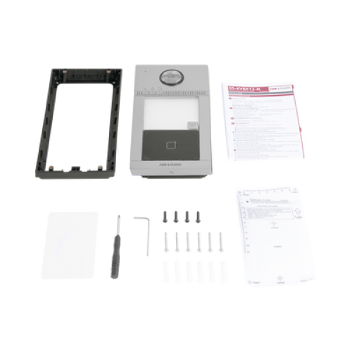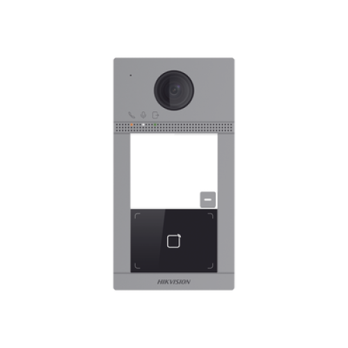 Videoportero IP 2 Megapixel / Llamada y Apertura Remota desde App Hik-Connect / PoE / Exterior IP65 + Antivandalico IK08 / 1 Departamento / Apertura con Tarjeta / Soporta 2 Puertas y hasta 6 Monitores