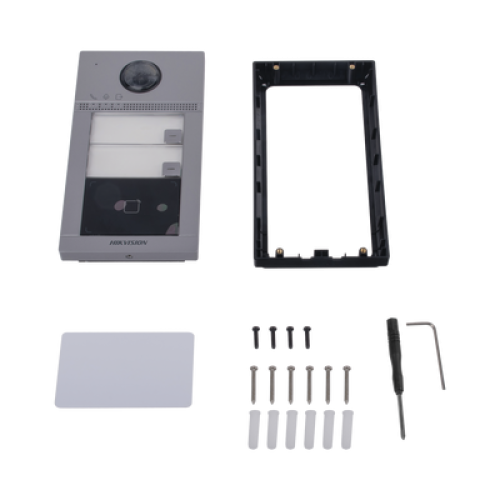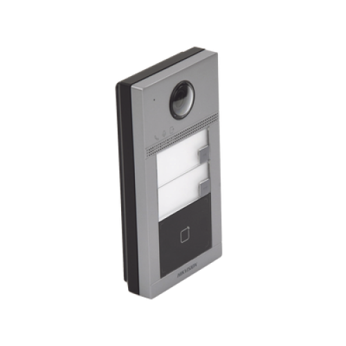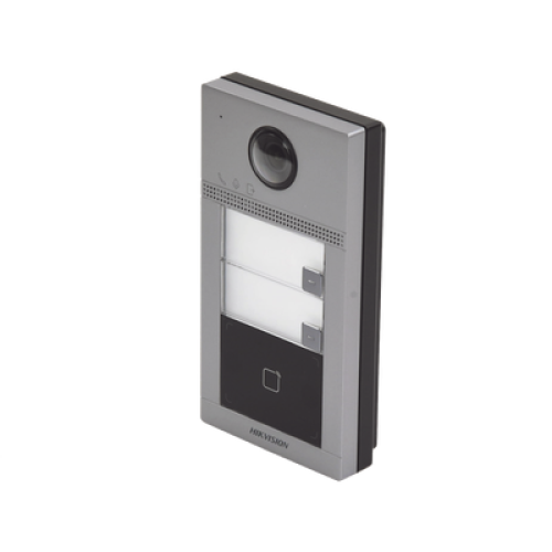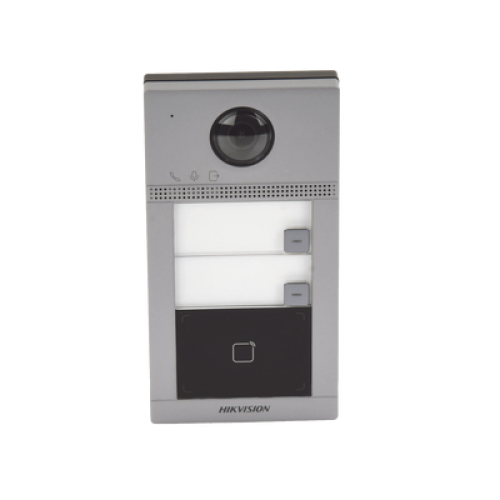 Videoportero IP (IP65 + IK08) con Llamada y apertura desde APP Hik-Connect / Soporta 2 Departamentos / PoE Estandar / Interfaz WEB para configuración / 2 puertas