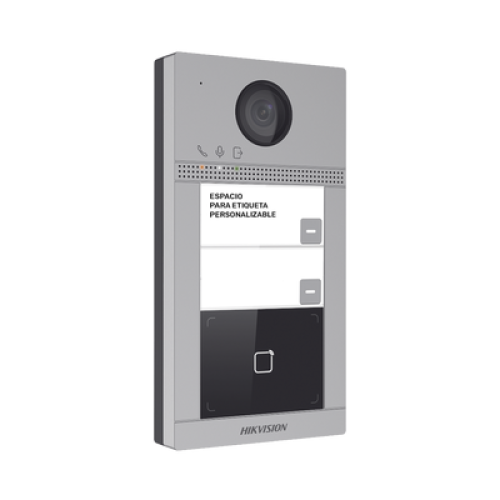 Videoportero IP 2 Megapixel / Llamada y Apertura Remota desde App Hik-Connect (requiere monitor) / PoE / Exterior IP65 + Antivandalico IK08 / 2 Departamentos / Apertura con Tarjeta / Soporta 2 Puertas y hasta 6 Monitores
