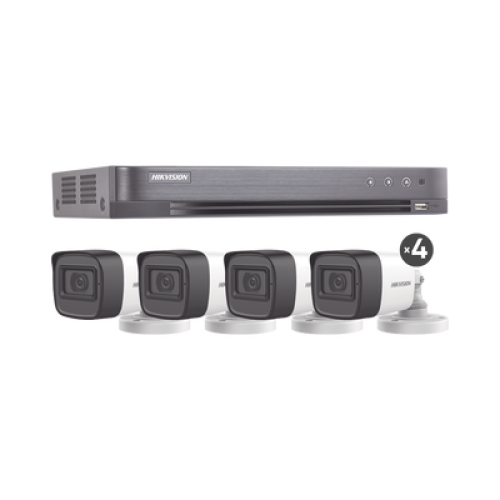 (MICRÓFONO INTEGRADO) KIT TURBOHD 5 Megapixel / DVR 4 Canales / 4 Cámaras Bala con Micrófono Integrado (exterior 2.8 mm) / Fuente de Poder / Accesorios de Instalación