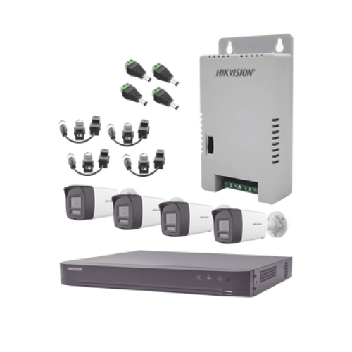 Kit Audio Bidireccional TurboHD 4K-3K / DVR 4 Canales 4K / 4 Cámaras Bala (Exterior) con Bocina y Microfóno Integrado 3K / 1 Fuentes de Poder / Accesorios