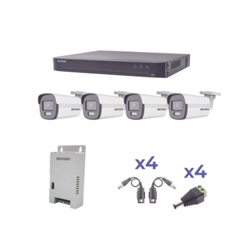 KIT COLORVU TURBOHD 1080p / DVR 4 Canales / 4 Cámaras Bala (exterior) lente 2.8mm / Fuente de poder profesional / Transceptores de video y Accesorios de corriente