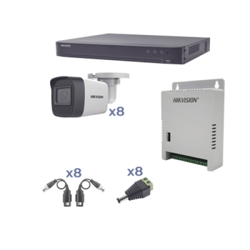 KIT TurboHD 1080p / DVR 8 Canales / 8 Cámaras Bala (exterior 2.8 mm) / Transceptores / Conectores / Fuente de Poder Profesional hasta 15 Vcc para Larga Distancia