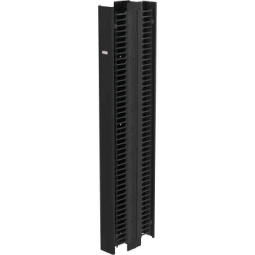 Administrador Vertical de Cables CableTek-EC, Doble Cara con Dedos Dobles, Acero 1.9 mm, Negro RAL 9005, 45U, Montaje Universal, Postes y Compuertas Incluidos