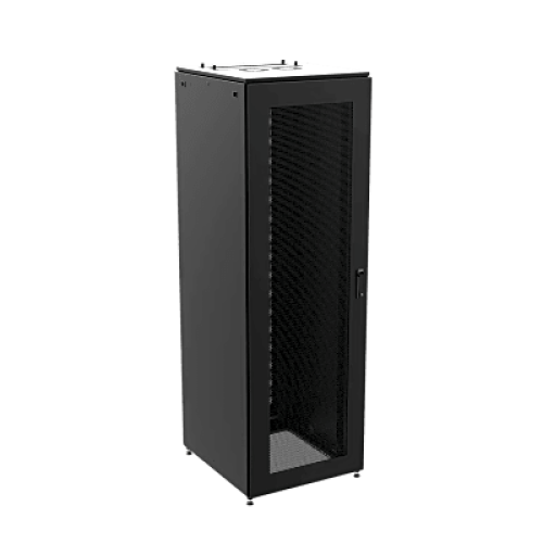 El gabinete ProLine S1 es una solución económica diseñada para contratistas, salas de computadoras pequeñas, instituciones educativas, puntos de venta minorista y redes de menor escala que requieren un gabinete de uso general para albergar servidores, interruptores, equipos de comunicación y sistemas de cableado estructurado. Fabricado en acero dulce con recubrimiento en polvo color negro jet RAL 9005, ofrece una capacidad de 48 unidades de rack con soporte para configuraciones tanto de 19 pulgadas como de 23 pulgadas. Su diseño incluye puertas completamente perforadas que maximizan el flujo de aire y cumplen con los estándares de ventilación de espacio abierto requeridos por los fabricantes de equipos. La estructura cuenta con bisagras sin herramientas, paneles laterales removibles y ángulos de rack totalmente ajustables que facilitan la instalación y mantenimiento en campo.
