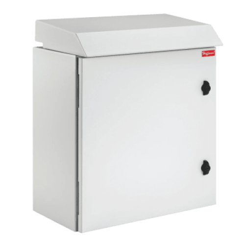 Gabinete rack industrial ProTek de 12 unidades con puerta sólida tipo 3R para uso interior/exterior. Fabricado en acero dulce de 1.9 mm de espesor con acabado en polvo gris claro RAL 7035. Incluye sistema de enfriamiento con dos ventiladores de alto desempeño controlados por termostato montados en la parte superior. Diseñado con protección superior integral contra goteo y protector solar. Certificado cUL según CSA C22.2 No. 94 y cumple con IEC 60529 para protección IP30/IP32 e IK10 contra impactos. Ideal para aplicaciones donde el espacio es limitado y se requiere montaje en pared, proporcionando protección completa contra agua, suciedad y otros contaminantes.