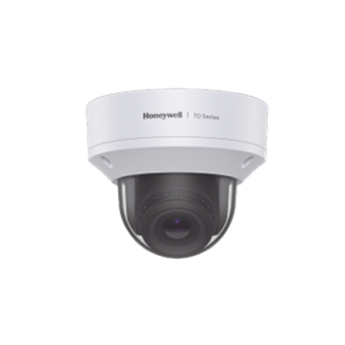 Domo IP 8 MP / Lente Mot. 3.6 a 11 mm / H.265 / NDAA / ONVIF / IK10 / WDR 130 dB / IA Avanzado Detección Sabotaje / Movimiento / Rostros / Intrusión / Merodeo / Objeto Abandonado / Alarma y Audio I/O / PoE / Serie 70 / Honeywell Security