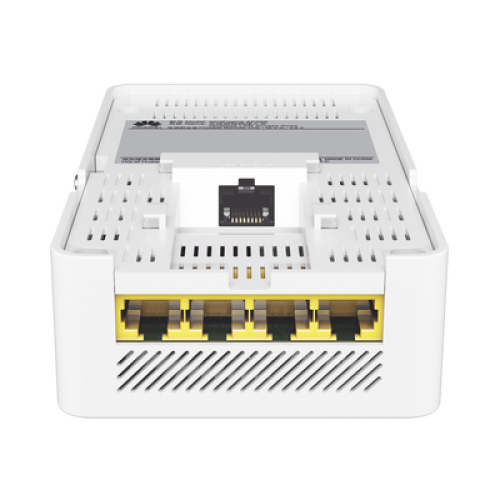 Punto de acceso de pared con puerto Gigabit PoE in para su alimentación y cuatro puertos Gigabit LAN, de los cuales uno soporta PoE out 802.3af, permitiendo conectar y alimentar directamente equipos IP cercanos. Su diseño compacto ayuda a reducir el cableado estructurado y simplificar la instalación en entornos interiores.