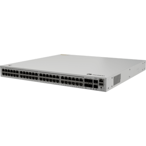 El Huawei eKit S530-48T4XE es un switch de Capa 3 de alto rendimiento diseñado para entornos empresariales exigentes. Ofrece 48 puertos Gigabit RJ-45 junto a 4 puertos uplink SFP+ de 10 Gbps, con una capacidad de conmutación de hasta 224 Gbit/s y una tasa de reenvío de 168 Mpps. Cuenta con funciones avanzadas como apilamiento iStack, gestión en la nube, redundancia de alimentación 1+1 y soporte para redes IPv4/IPv6, todo en un chasis robusto.