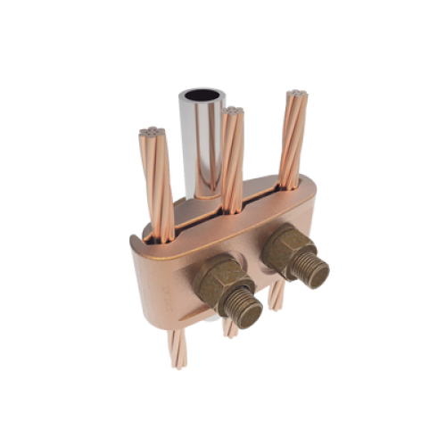 Conector Mecánico para 3 Cables para Calibre 4 AWG - 2/0 AWG a Tubería de 3/8" o Varilla 5/8" - 3/4" Perno 3/8".