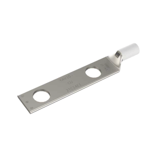 Zapata Terminal de Compresión de Barril Largo con Doble Ojillo para Tornillo 1/4" y Cable 14-10 AWG / Espaciado de 5/8".