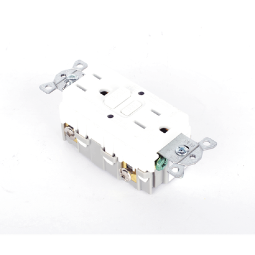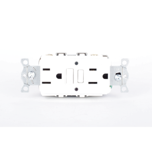 Contacto de Auto-verificación GFCI con Interruptor de Falla a Tierra de 15 A 125 V 2 Polos, 3 Hilos Color Blanco (Nema 5-15R), Grado Comercial.